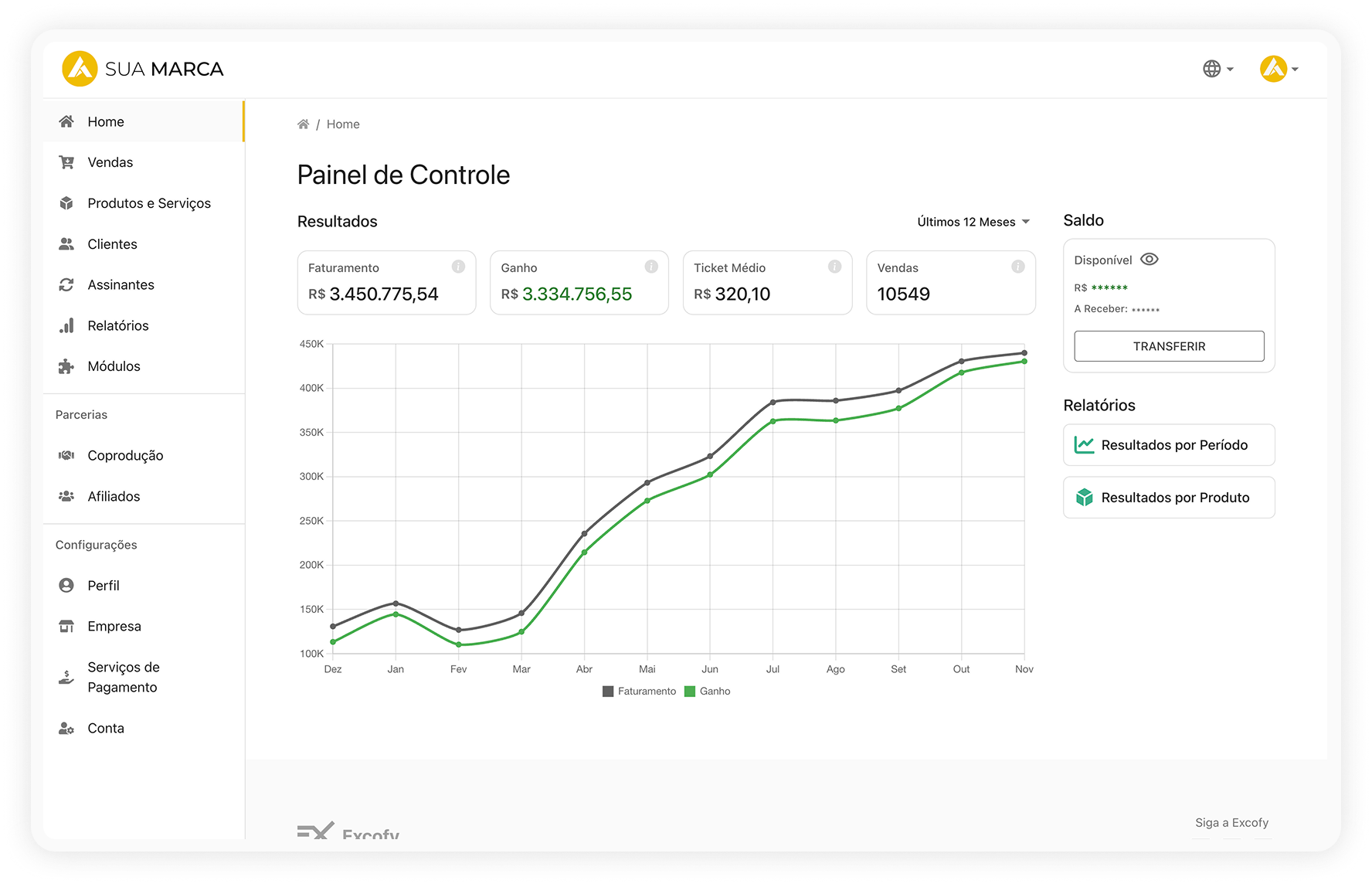 Veja quanto é o seu lucro líquido na Excofy em uma venda de R$ 100, comparado aos principais concorrentes.